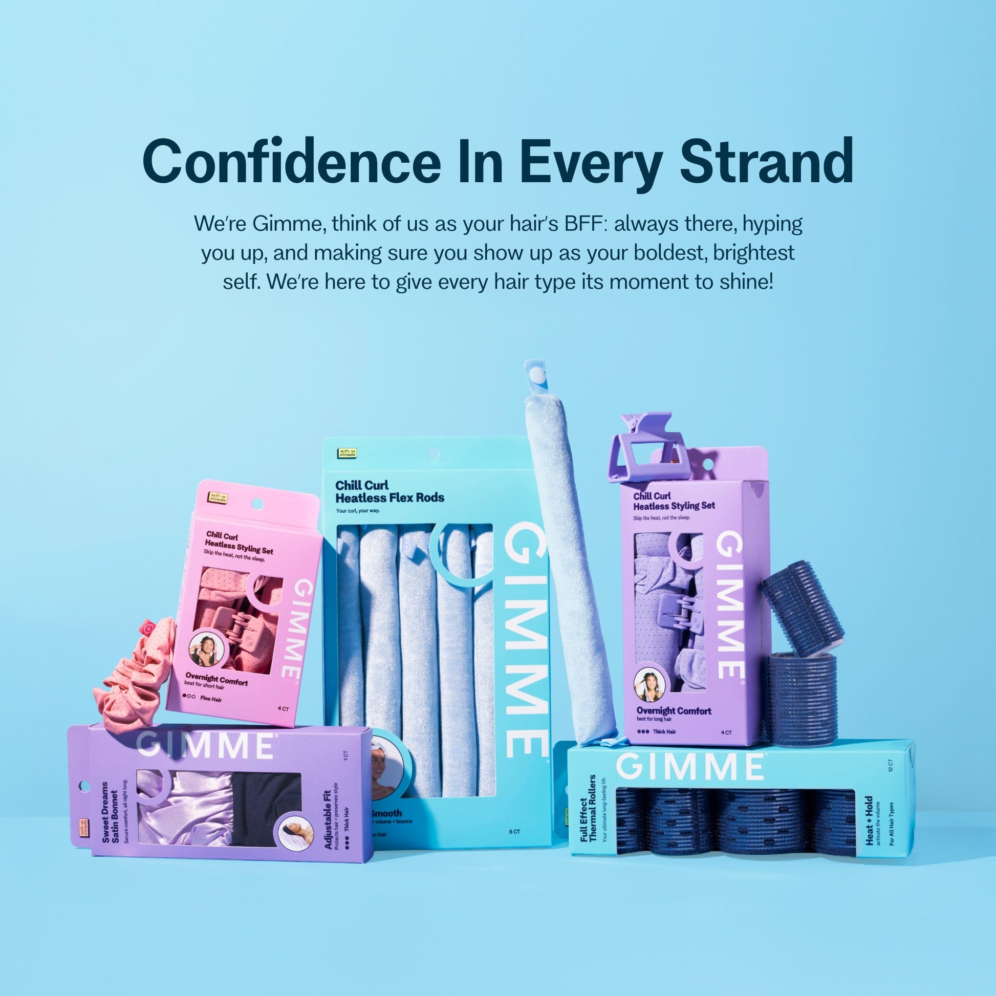 Healthy hair and dreamy curls: Our Dream Curl Collection is thoughtfully designed with your hair health in mind. From our ultra-soft heatless curlers in various sizes to our protective satin bonnets, this collection makes waking up to effortless curls cozy and easy.