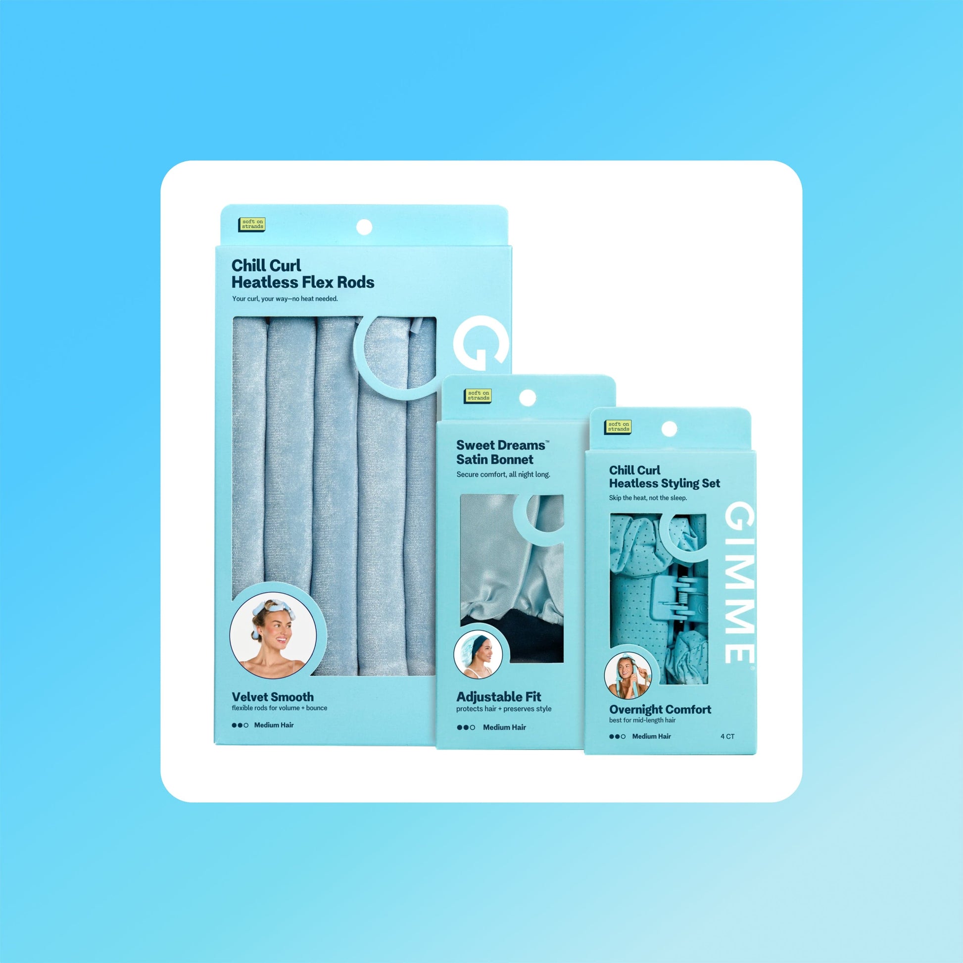 Healthy hair and dreamy curls: Our Dream Curl Collection is thoughtfully designed with your hair health in mind. From our ultra-soft heatless curlers in various sizes to our protective satin bonnets, this collection makes waking up to effortless curls cozy and easy.